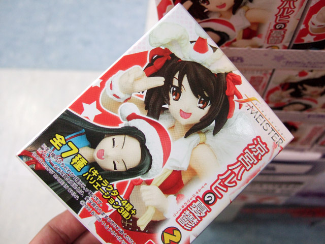 全高120mm〜で、ハルヒ(サンタバニー)、みくる大人、みくる大人“禁則事項です”Ver.、長門水着(ノーマル)、長門水着(カラバリ) 、鶴屋さん制服 、鶴屋さん制服”笑顔”Ver.の全7種。1BOX8個入り。