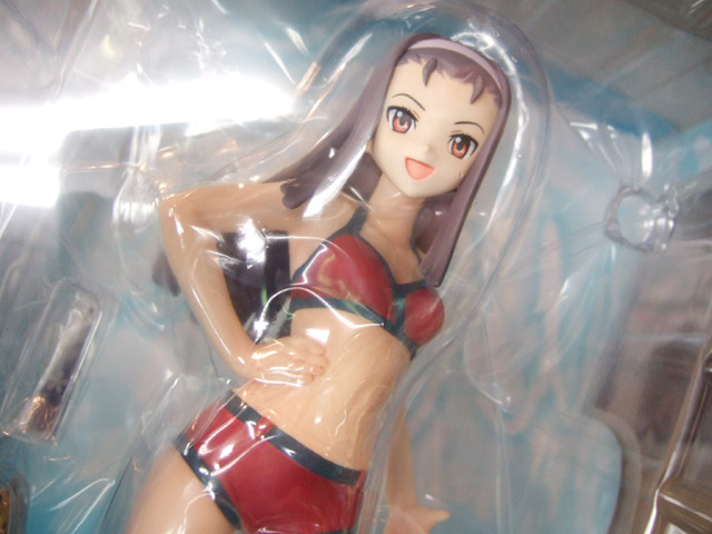 これは、以前サンプル展示もお伝えしたこともある、アニメ「アイドルマスター XENOGLOSSIA」のキャラ立体化シリーズ3部作最後となる第3弾で、グッスマの商品説明によると「自信家でいつも強気に振舞うが、影では人一倍の努力家。チャームポイントはもちろんおでこ。彼女らしいスポーティな水着で微笑む、自信に満ち溢れる姿で立体化しました。これにてチェリーブロッサム3部作揃い踏み。ひとつ残さず、お部屋に並べてください。」と紹介されています。