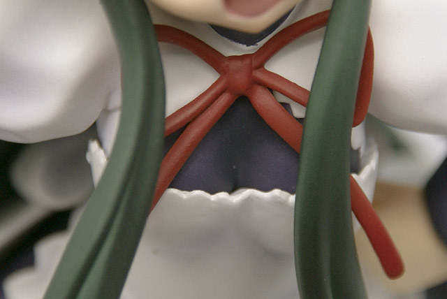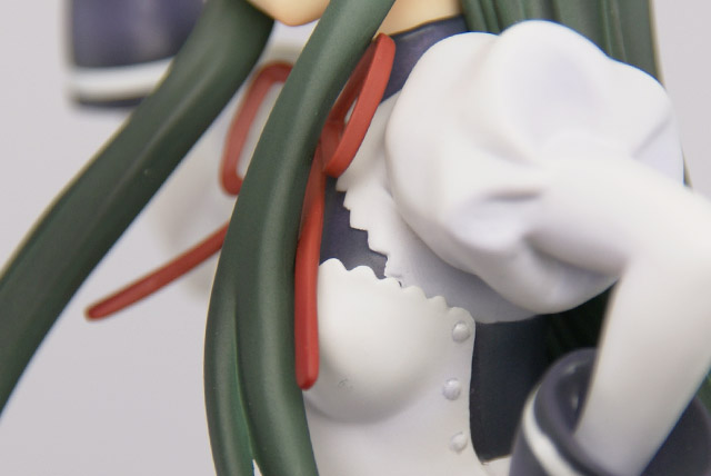 ウェイトレスコスのエプロン部分やスカートなどのシワやひねり、翻った様子などの造形は、見ればみるほど繊細で、とくにスカートにいたっては、PVCでよくこの複雑なうねりを出したなあと感心してしまいます。