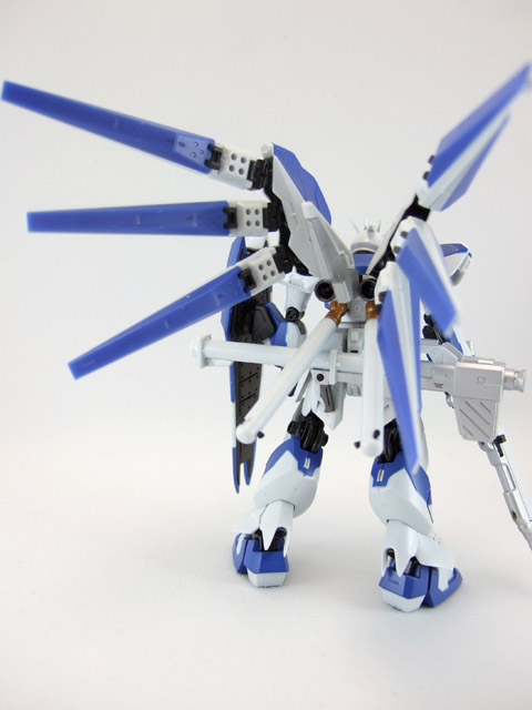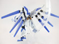 付属武器は、シールドx1、ビーム・ライフルx1、ニュー・ハイパー・バズーカx1、ビーム・サーベルx3、フィン・ファンネルx6。(一部、付属武器は組立式)