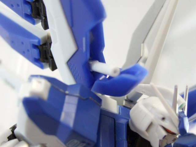 他、フィン接続のバックパック部や、左腕にはビームサーベルが収納でき、肩アーマーも右の画像のように独立して垂直まで可動したりと、細かいギミックもしっかりと再現されていました〜!