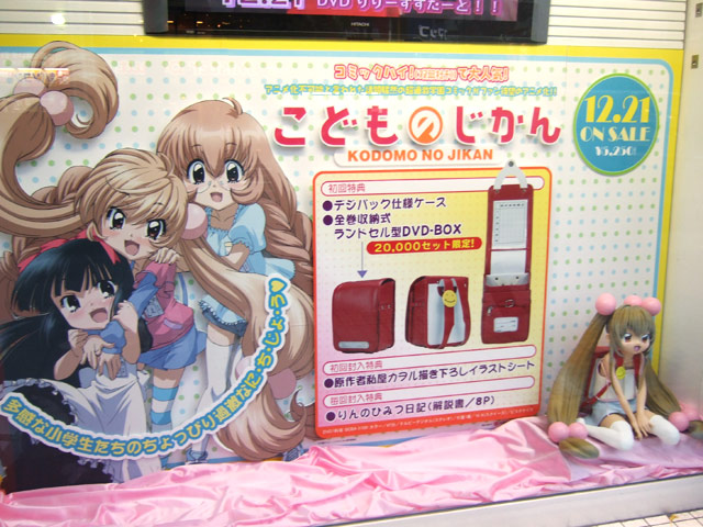 ショウケースに掲示されていたPOPはフィギュアではなく、21日に発売予定のDVD「こどものじかん 1科目 初回版」(AA)のもの。