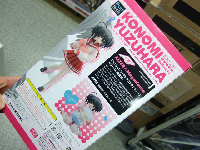 これは、「ToHeart2」のキャラをアクションフィギュアにした、メガハウスの「向坂環」(サンプル展示)、小牧愛佳(サンプル展示)に続き、「柚原このみ」を、沼倉としあき氏原型のPVCヘッドのアルファオメガブランドとして発売するアクションフィギュア第1弾となるもので、メガハウスの商品説明によると『FC+『ToHeart2』シリーズの第3弾として発売されるのは、人気のメインヒロイン「柚原このみ」。間接の自由度や、ファン心を抑えたボーナスアイテム(今回は「パジャマ」と「まくら」)など、相変わらずプレイバリューの高いフィギュアなのだが、なんとこの第3弾からは、いよいよ新展開コラボレーションが始動!共同プロジェクト「アルファオメガ」の一環として、フィギュアメーカーのアルターが頭部原型製作に参加しているのだ。超強力タッグで生み出されたこのみの可愛らしさに、キミもノックアウト! 』と紹介されています。
