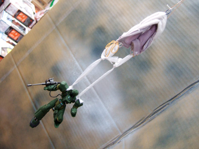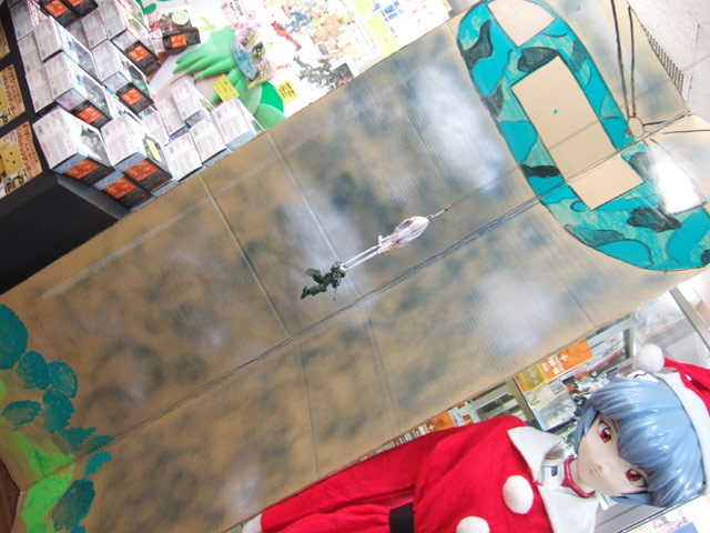 なお、海洋堂ホビーロビーでは、手製のパラシュートをつけたヘルダイバーが、ヘリから降下するシーンを再現したヘリや背景が手書きのダンボールなディスプレイもありましたw