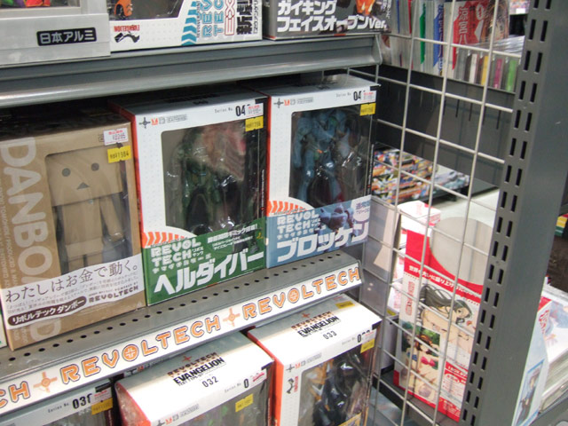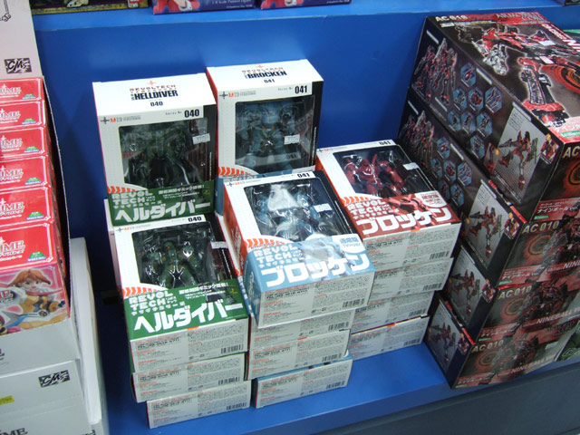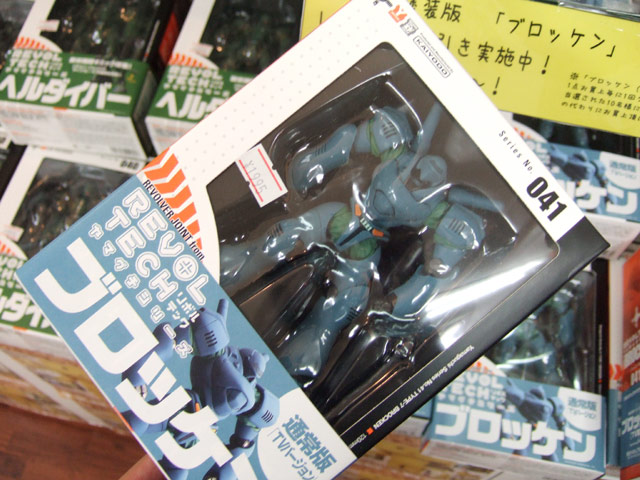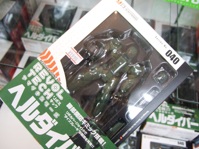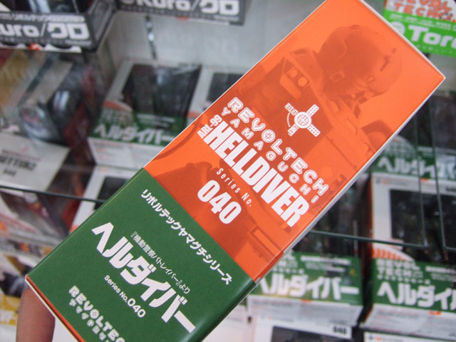 12月15日、今年最後となる海洋堂のリボルテックヤマグチの発売日となりました。今回は「No.40 ヘルダイバー」(AA)、「No.41 ブロッケン」(AA)、「フレンドショップ限定 ブロッケン初期OVA版」(AA)の3種となっています。海洋堂ホビーロビーでは、手製のパラシュートをつけたヘルダイバーが、ヘリから降下するシーンを再現したヘリや背景が手書きのダンボールなディスプレイもw