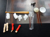 お父さん用の手首×3、箸×2、茶碗、バット、コロナ用の腕パーツ3種付属。
