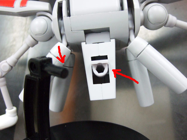 飛行状態のときは、別途付属のスペーサーを台座につけて、変形すると出てくる穴に差し込む感じでした。