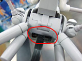 で、おとうさんの台座なんですけど、ロボ状態のときは、後ろにあるお尻(?)部分のダボ穴を引き出して、台座と差し込みます。