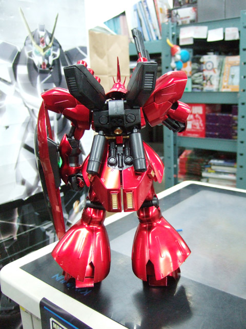 バンダイMG サザビー メタリックコーティングver.」(AA)のサンプル展示がキャラシティにて開始しています。これは、2000年7月に発売された「ノーマル版」(AA)に、メタリック加工の塗装を施したものです。メタリック塗装だと、ほぼ同じ仕様のハイコンのスペシャルペインテッドを思い出しますが、ほぼ倍のサイズとボリュームなので、圧倒的な存在感と迫力がありましたよ!