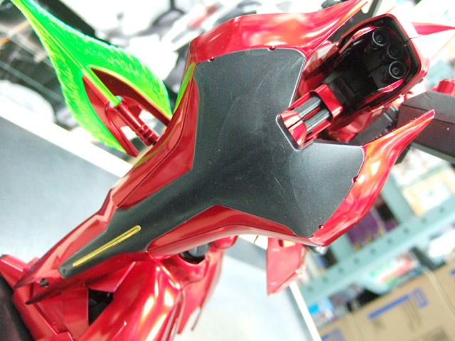 実際はもっと美しい輝きなのですが、画像でお伝えしきれないのは、以前お伝えしたバンダイ「HCM-Pro SP-01 サザビー スペシャルペインテッド」のサンプル展示同様で、キャラシティに行く機会のある方は、是非一度なまでごらんいただきたいと思います!