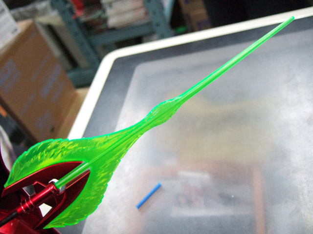 当然、ランナーの時点でコーティング塗装がされているので、サンプルは素組みのものだと思いますが、その輝きは圧倒的な存在感があります!
