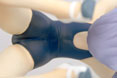 タダでさえワンサイズ小さめな感じなのに、さらに大開脚ポーズなので、股間やケツへの食いこみっぷりが半端じゃありませんよ!