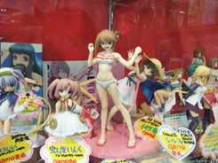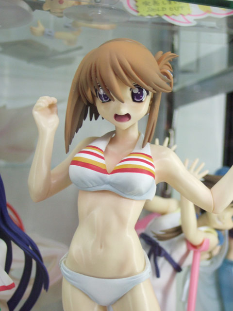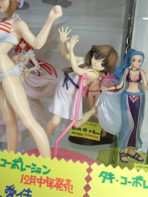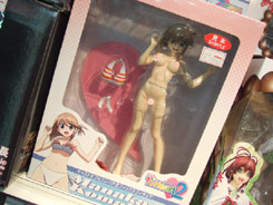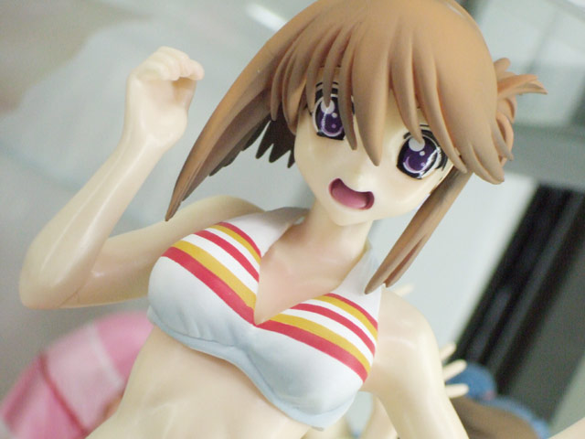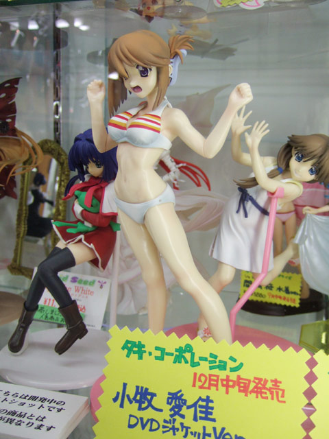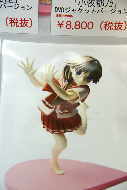 これは、以前宮沢模型展示会2007年秋でのサンプル展示もお伝えした、「ToHeart2」の「小牧愛佳」を、「OVA 第2巻」(AA)のジャケットイラストを元に立体化したもので、タキオンの商品説明によると「『OVA ToHeart2』より、第2巻『あの夏、一番騒がしい海』のDVDジャケットイラスト(柳沢まさひで氏画)をもとに『小牧愛佳』がフィギュアになりました。白のビキニに加えて、着せ替えパーツとして制服が同梱されています。」と紹介されています。