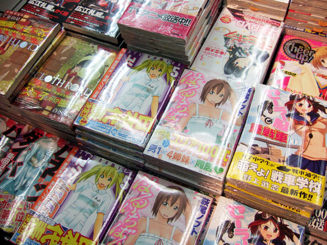 画像は、それぞれ対象の描き下ろしメッセージペーパーが先着で付属する、とらのあな1号店での販売の様子。