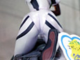これは、以前キャストサンプルレビューやPVCサンプル展示もお伝えした、「新世紀ヱヴァンゲリヲン 新劇場版」のキャラ「綾波レイ」を、劇中のプラグスーツ姿で立体化したもので、コトブキヤの商品説明によると「パール塗装によってプラグスーツの滑らかな張りの強弱を、髪はクリアーで透明感を表し、レイの劇中の魅力を忠実に再現しています。女性らしいセクシーなポーズと憂いを帯びている口元など、御覧になる角度によって様々な表情を見せてくれます。ベースには乗機である零号機を彫刻風にかたどるなど、細部までこだわりを貫いた存在感のある仕上がりになっており、全てのフィギュアファン注目の一品となっております。」と紹介されています。