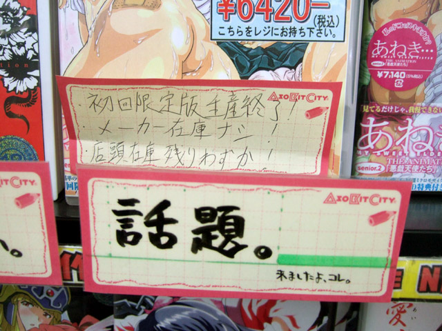 ゲームシティではPOPによると「・初回限定版生産終了!・メーカー在庫ナシ!・店頭在庫わずか!」というDVD「あねき・・・1巻」(AA)も販売していました。