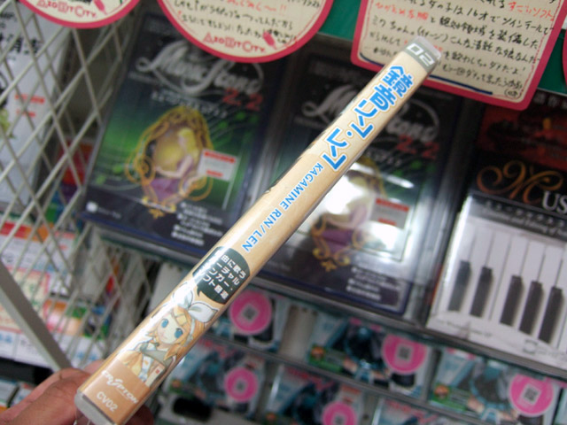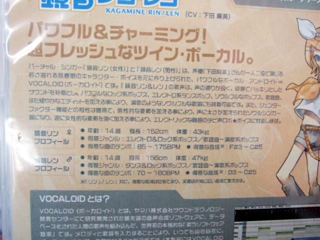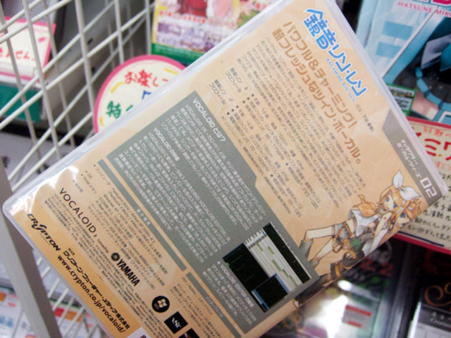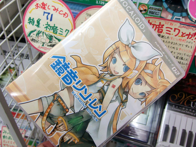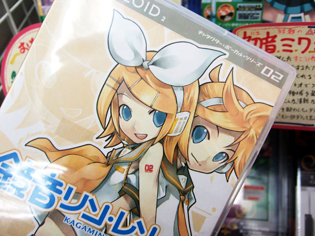 12月21日、ゲームシティにて、12月27日発売予定のクリプトン「VOCALOID2 キャラクターボーカルシリーズ02 鏡音リン・レン」(AA)のサンプルパッケが展示されていました。