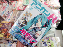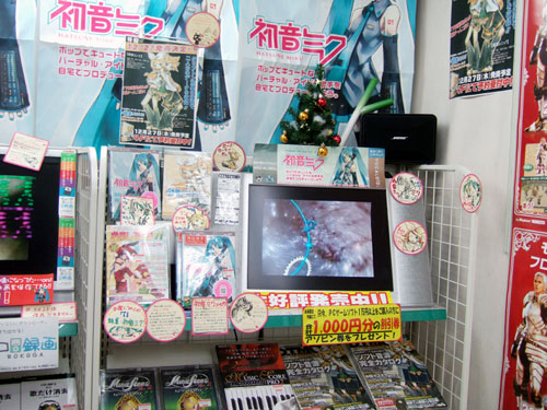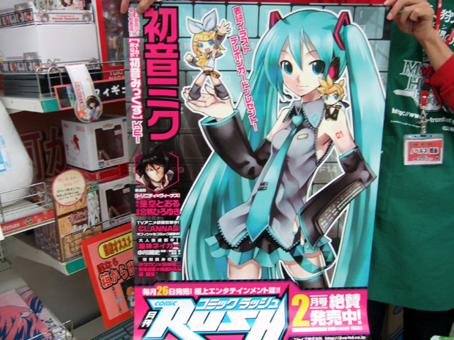 初音ミクや鏡音リン・レンのオフィシャルイラストレーターのKEI氏の初音ミクコミックが連載開始した、「月刊 COMIC RUSH (コミック ラッシュ) 2008年 02月号」(AA)の販促ポスターも見せていただけました。