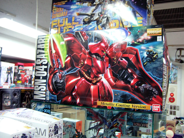 関連:機動戦士ガンダム 逆襲のシャア – Wikipedia/バンダイ「MG サザビー メタリックコーティングver.」のサンプル展示