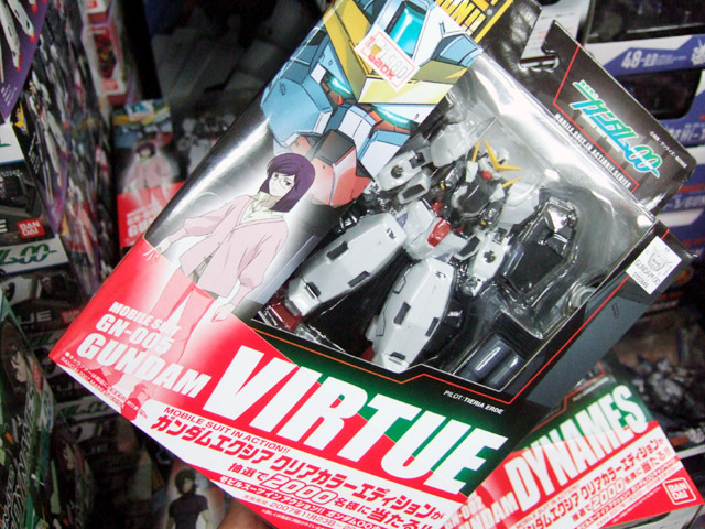 機動戦士ガンダムダブルオーの主人公チーム、ソレスタルビーイングに所属するティエリア・アーデの駆るガンダムヴァーチェが組立塗装済みフルアクションフィギュア「MS IN ACTION!!」で登場。専用の大型バズーカやバックパックに搭載されているキャノン砲の展開ギミックなどの再現が可能です。
