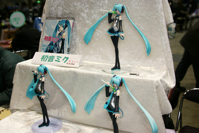 12月23日、東京ビッグサイトにて、ワールドホビーフェスティバル(WHF)有明17が開催されました。今回も個人・メーカーの新作フィギュアが多数展示されていましたが、個人の中には初音ミクものもちらほらと。左の画像はその中のアウトプットさんのもの。その他、希有馬屋さんのアクシア展示等、いつも通り、まずはフォトレポートとして会場の様子をお伝えします。