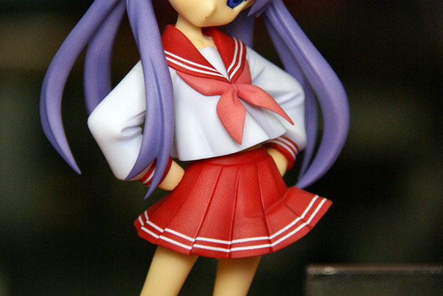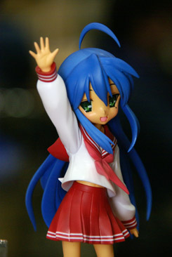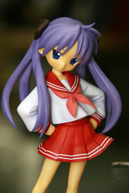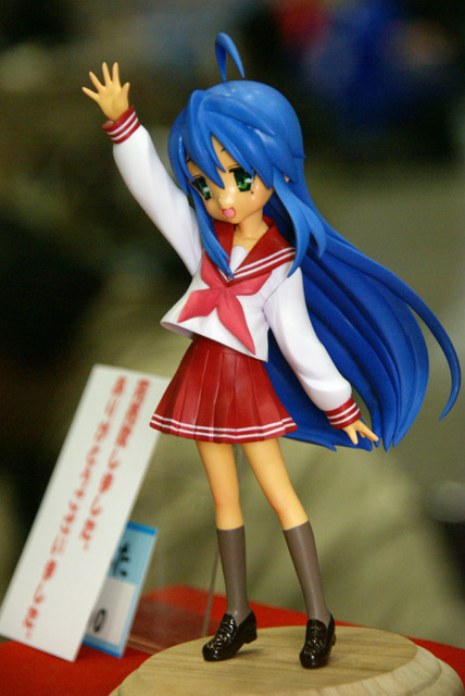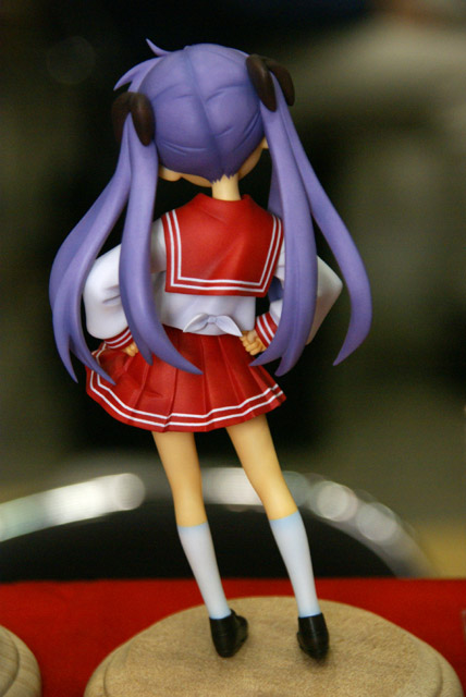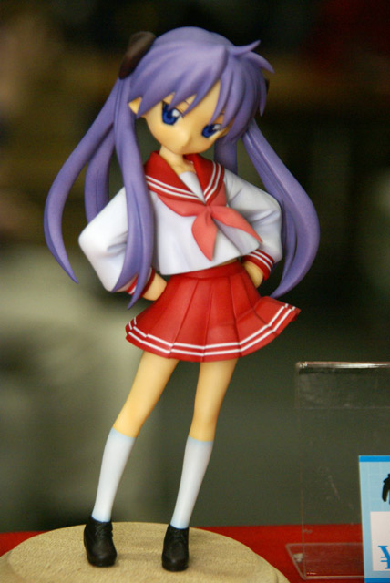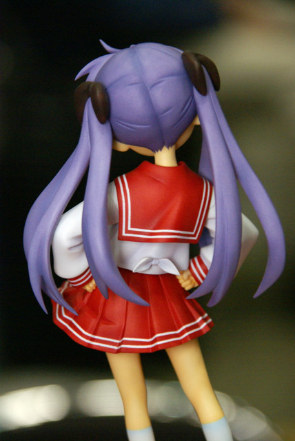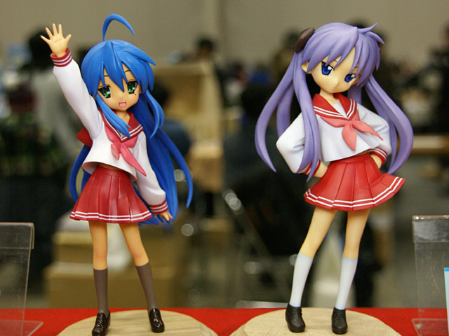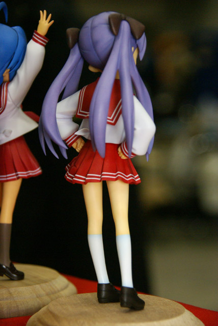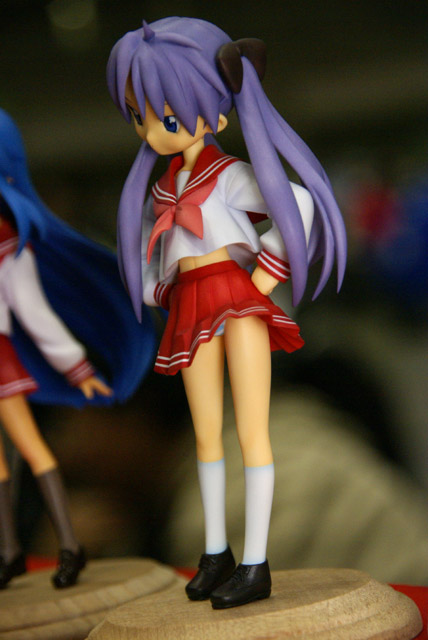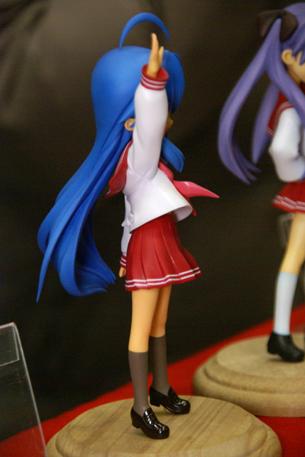 12月23日に開催された、ワールドホビーフェスティバル(WHF)有明17チェリーブロッサムさんのブースでは、新作の「らき☆すた」のこなたとかがみが展示されていました。どちらも特徴をうまく捉えたポーズ&表情で、とても良い完成度かと!特にかがみのツンっとした表情はかなりイメージに近いと思いますよ〜! あ、あとかがみは縞パンはいてましたw