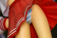 ちょっとだけ翻ったスカートの置くにはまぶしい縞パンが!w