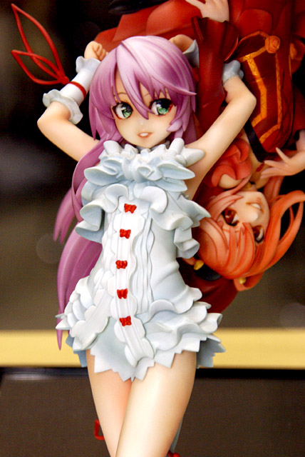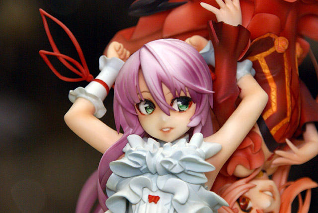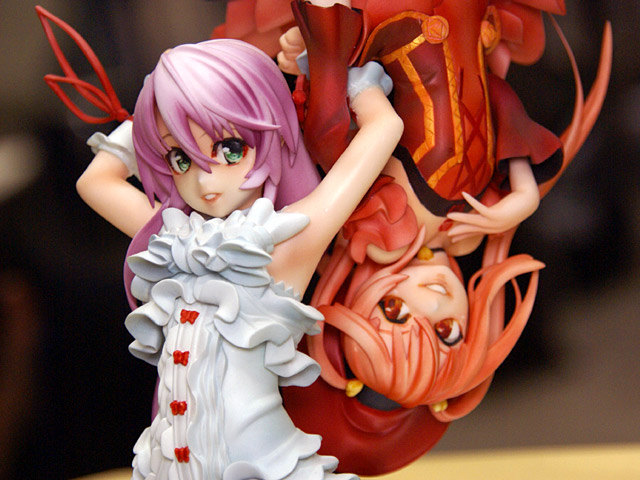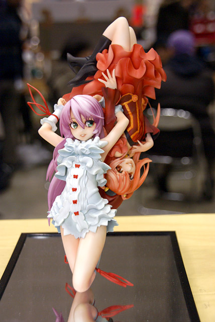 12月23日に開催された、ワールドホビーフェスティバル(WHF)有明17Milky dollさんのブースでは、「フィギュアマニアックス 25」(AA)でも掲載されている、「機神飛翔デモンベイン アル・アジフ&アナザーブラッド」の彩色見本が展示されていました。造形はもちろん、色彩、特に瞳が綺麗で、まるでNiθ(にしー)氏のイラストが飛び出してきたかのような完成度でした!