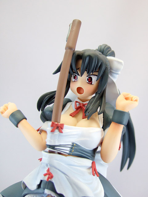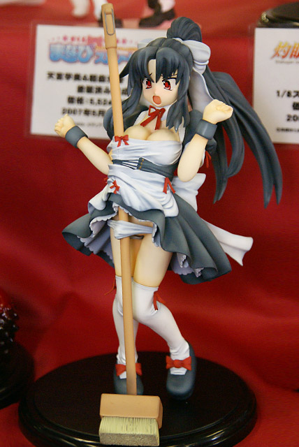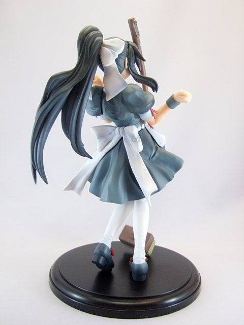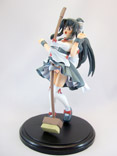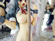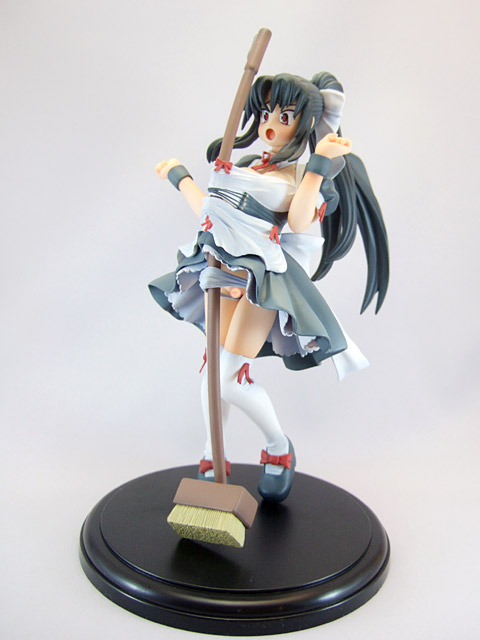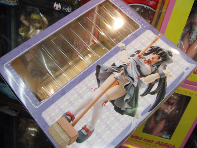 これは、以前サンプル展示もお伝えし、陰獣 繁殖態のPOPに使用例として掲載もされていた、ドラゴンエイジピュア連載の「クリムゾングレイヴ」(AA)のキャラ「ミリム・イクサス」を、ドラゴンエイジピュアblogによると『「どうやったらこんなところにデッキブラシが刺さるんだよ!」というツッコミはご勘弁下さい(笑)。』という、なぜかデッキブラシがメイド服の中に差し込まれたポーズで立体化されたもので、あみあみの商品説明によると「破壊力抜群!ぬげる!もめる!もぐりこめる!?三拍子そろった待望のフィギュア登場です!単体で飾る?遊ぶ?もよし陰獣シリーズに絡めるもよし!思う存分遊び倒せ!!」と紹介されています。
