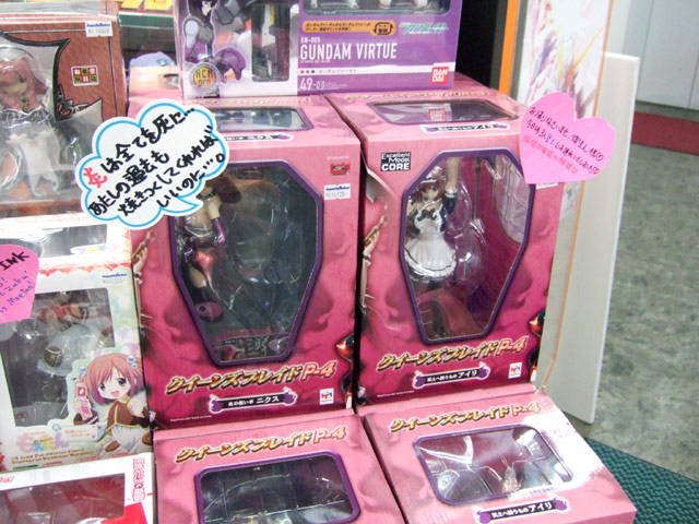 12月27日、メガハウス エクセレントモデルCORE クイーンズブレイドP-4「冥土へ誘うものアイリ」(AA)、「炎の使い手ニクス」(AA)の2種が発売されました。今回も2種ともにキャストオフ可能な仕様となっていて、アイリはかなり食い込んだスジパンで、ニクスの方はガーターで「はいてない」でしたw キャラシティでは、その2種をキャストオフした展示も開始しています。