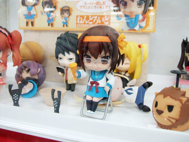 これは、第2弾「長門」(RA)(参考レビュー)、第3弾「みくる」(発売記事)、第4弾「鶴屋さん」(AM)(サンプル展示)と続いている、ねんどろいどハルヒシリーズの第1弾となるもので、グッスマの商品説明によると『ユルさ唯我独占!!ご好評につき「ねんどろいど 涼宮ハルヒ」再販決定です。表情替え顔パーツ3種やおまけパーツの組み替えにより、おなじみの「指差し」、「超監督」、「あっかんベー」が再現可能。ねんどろいどのユルい魅力と、彼女の表情の豊かさを見事なまでにマッチングさせました。飾ってかわいい遊んで楽しいねんどろいど、「つべこべ言わず1人3個は買いなさいよ!」 』と紹介されています。