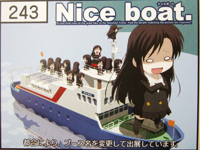 関連:School Days – 公式/School Days (ゲーム) – Wikipedia/コミケ73の0verflowのブース名は「都合により、ブース名を変更」して「Nice boat.」他