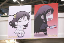 ブース横には、撮影禁止「じゃないよ」としたショウケースがあり、その中にはペーパークラフト風のNice boat.と、その上に、最後尾の言葉様と同じポーズの言葉様ディフォルメフィギュアのサンプルが展示されていました。