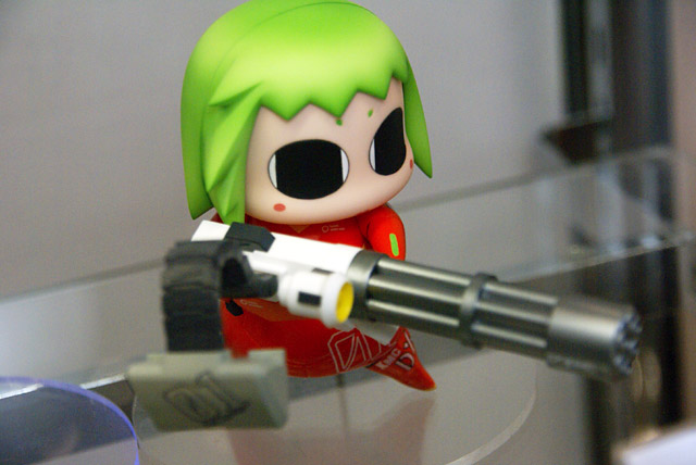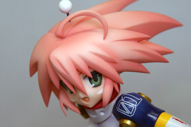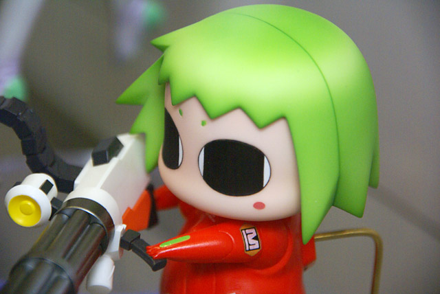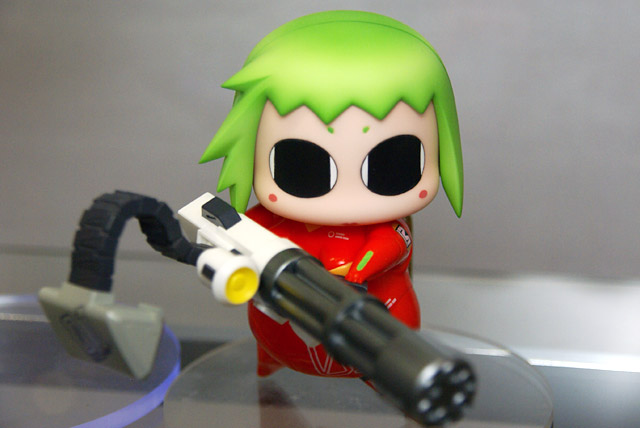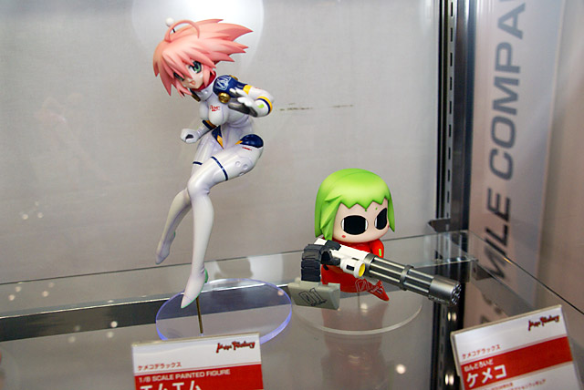 これは、2008年にアニメ化されることが発表された、月刊電撃コミック ガオ!で連載中のいわさきまさかず氏著書のコミック「ケメコデラックス!」の「エムエム」と「ケメコ」をそれぞれ立体化したもので、以前、電撃15年祭で、2種を組み合わせ、1巻の表紙イラスト(AA)を再現した合体展示はされていましたが、別々の単独展示は今回が始めてとなるみたいです。