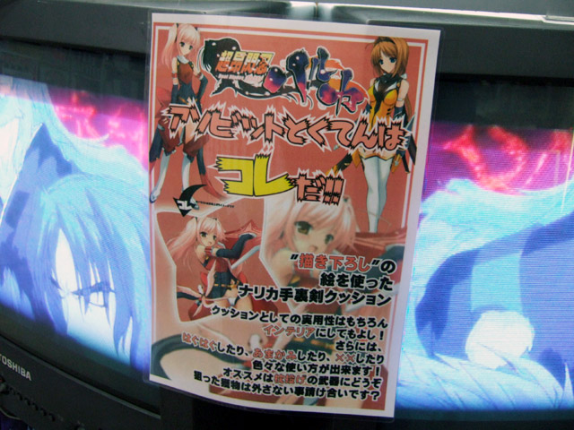 2月29日発売予定のアリスソフトのエロゲ「超昂閃忍ハルカ」(AA)の予約告知がアキバのいくつかの店舗で始まっています。ゲームシティでは、ショップ購入特典の「“描き下ろし”の絵を使ったナリカ手裏剣クッション」のイメージイラストを公開開始していました。POPによると「はぐはぐしたり、あまかみしたり、XXしたり色々な使い方が出来ます!」とのことですw
