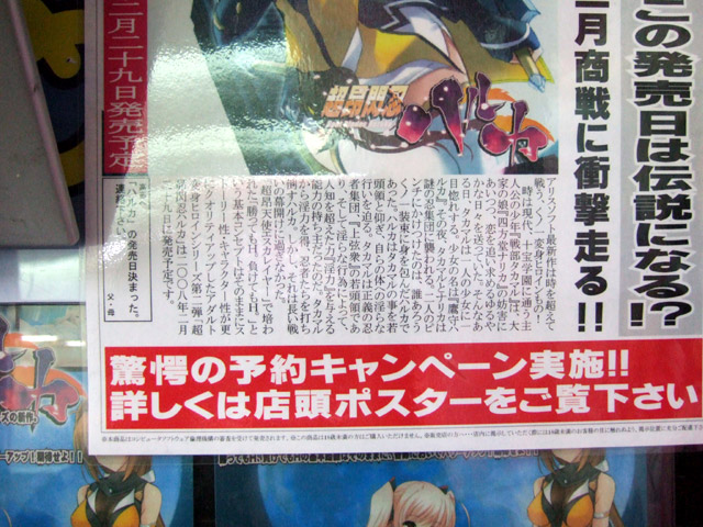 2月29日発売予定のアリスソフトのエロゲ「超昂閃忍ハルカ」(AA)の予約告知がアキバのいくつかの店舗で始まっています。