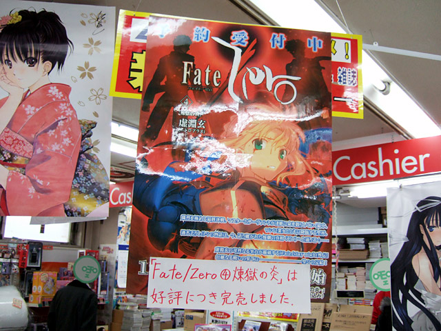 2007年12月31日に発売された「Fate/Zero Vol,4 -煉獄の炎-」ですが、4日に見に行ったところ、ソフマップアミューズメント館、ゲームシティ、ゲーマーズ本店では完売となっていました。