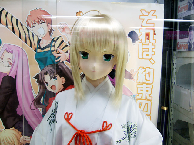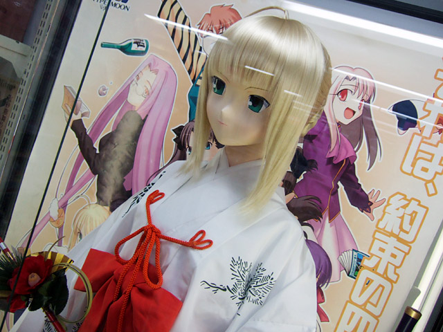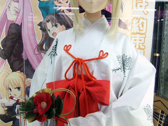 キャラシティ4Fでは、「等身大のセイバーさん」(DA)に巫女服を着せていました。
