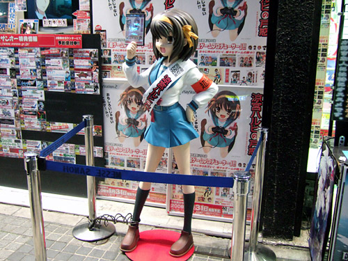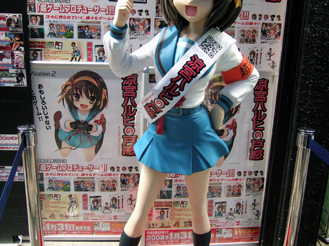 メッセ店頭では、東京ゲームショウ2007でも展示されていた、PS2「涼宮ハルヒの戸惑・超限定版」(AA)告知用等身大ハルヒがおかれていました。