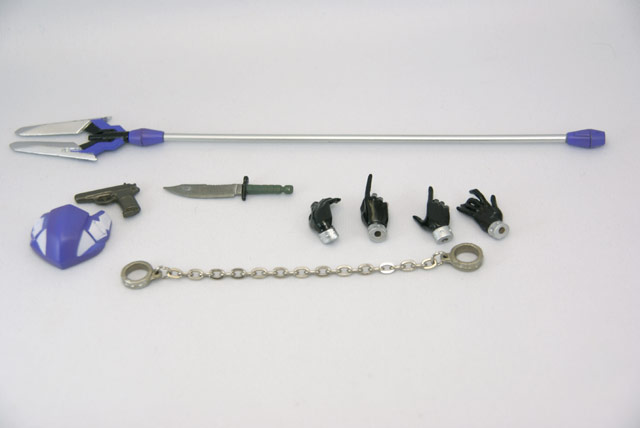 左手首は1種ですが、右手首は3種付属していて、武器の種類によって持ち手を使い分ける感じでした。