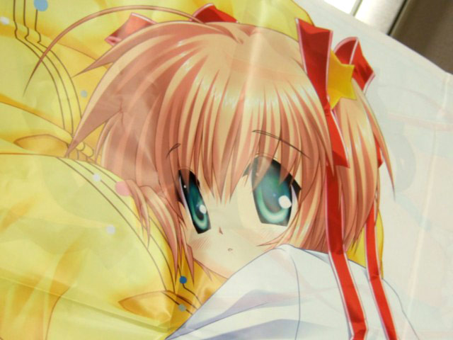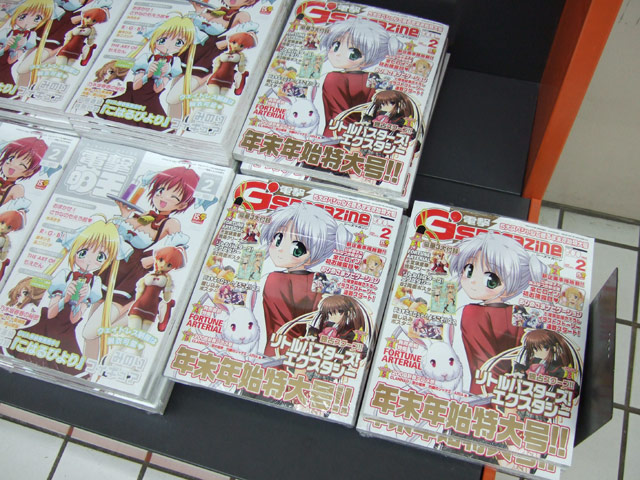 2007年12月27日に発売された、「電撃G’smagazine 2008年 2月号」(AA)は、アキバOSさんでどこかで見たような足の裏とスジと紹介されている、アソビット特典イラストと同じ、スージー縞パンな小毬イラストと、ソフマップ特典のイラストを用いた「リトルバスターズ!エクスタシー 両面ポスター」が付属していて、ゲーマーズ本店では、そのポスターのサンプルが展示されています。