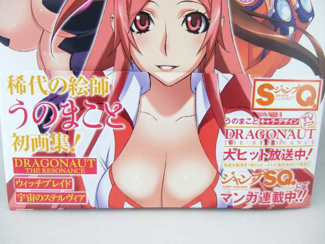 2007年11月に発売された初版はアキバでは瞬殺だったらしい、集英社「うのまこと画集UNO!」(AA)が8日にメロンブックスで再入荷してました。これは、商品説明によると『「DRAGONAUT -THE RESONANCE-」「ウイッチブレイド」「宇宙のステルヴィア」「超重神グラヴィオン」の人気イラストを網羅!』という、うのまこと氏初の画集。綴じ込みで雅音の開脚A3ポスターも付属。
