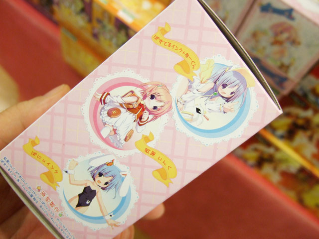 全高約100mmで、めいどインク+ぺんくん、スク水いんく+むにさん、プリンセスいんく、ぱすてるインク+あーくん、虹原いんく、ばにぃインクの通常版6種+新色版6種の計12種。