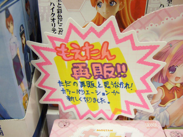コトブキヤラジオ会館のPOPによると「もえたん再販!!ただの再販と思うなかれ!カラーバリエーションが新しくなりました。」とかかれていました。