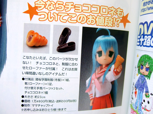 今月号から、期間限定受注となる、ママチャップトイ製の「らき☆すた こなたドール」の誌上通販が開始されています。