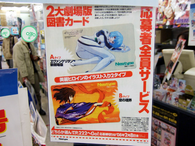 また、ゲーマーズ本店のPOPによると、「エヴァンゲリオン新劇場版」「空の境界 劇場版」の図書カードが応募者全員サービスみたいです。応募締め切りは2008年2月28日。