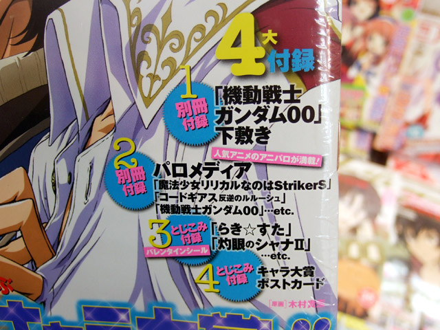 ・約半年に一度のお楽しみ企画!人気アニメ作品のパロディマンガを多数収録いたしました。『ガンダム00』が初登場!『なのはStS』も長谷川光司先生の描きおろしを含む全16Pを収録。『魔法少女リリカルなのはStrikerS』『機動戦士ガンダム00』『ひぐらしのなく頃に解』『PERSONA-trinity soul-』『コードギアス 反逆のルルーシュ』