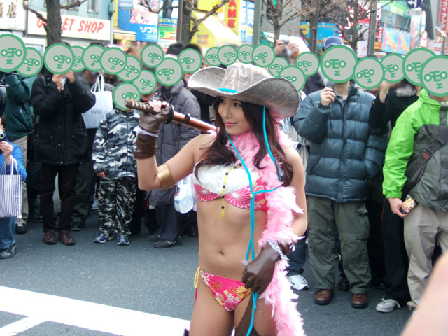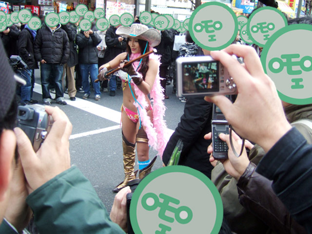 2月10日、アキバのホコ天に、グラビアアイドルErinaが『お姉チャンバラRevolution』のPRでファミ通.com編集部を訪問!Erina「ゾンビを斬っちゃった。もう快感!」 (ZAKZAK)でもお伝えされている、Wii「お姉チャンバラ Revolution」(AA)のイメージキャラクターのErinaさんが、その「お姉チャンバラ」の水着コスで、つくばTVの撮影を行っていました。