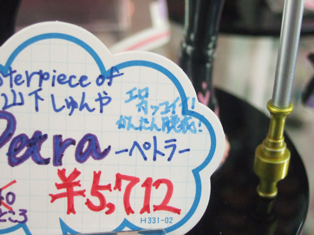 先日発売をお伝えした、アオシマ「Masterpiece of 山下しゅんや No.2 ペトラ」(AA)ですが、9日には宇宙船でも入荷していて、POPに「エロカッコイイ!かんたん脱衣!」としてヤッパリ剥いたサンプルを展示してましたw そのサンプルによると、乳首丸出し&ローレグ紐パン姿に出来るみたいw 他、赤いカラバリの「マイルストン限定版」(AA)も発売していました。