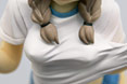 ノーブラなのに上着引っ張っているという、見せてんのよ状態w